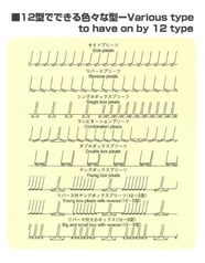 ・12型サイドプリーツ機をベースに改良を加え、かつ各種新機構を装備し、従来のサイドプリーツのみならず、新機構デザインドラムの正転・逆転・休止を任意選択することにより、ワンポイントプッシュアップ柄を始めとする、豊富なプッシュアップ柄を簡単かつ確実に生産できます。